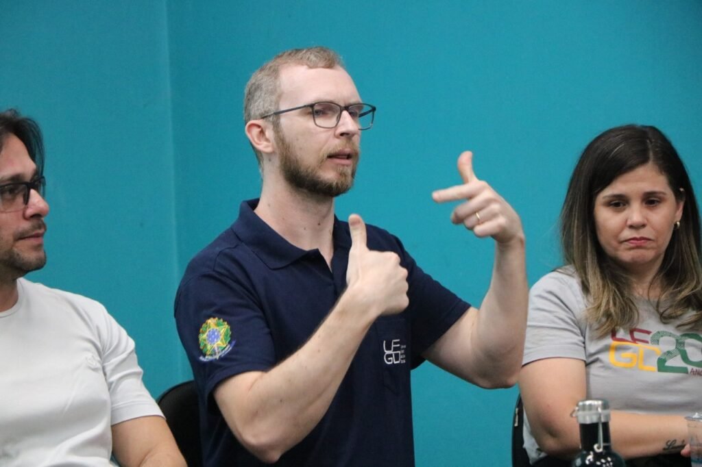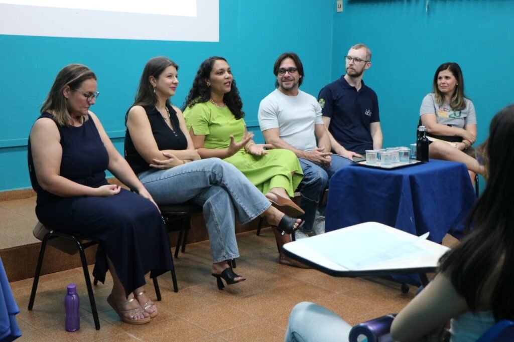 A mediação ficou a cargo do Prof. Dr. Tiago Marques Luiz, docente efetivo do curso de Letras da FALE/UFGD e também egresso do PPGL, que destacou a relevância do encontro como espaço de partilha e fortalecimento de vínculos acadêmicos.