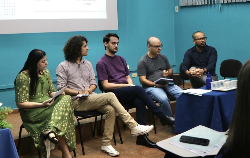 Na segunda mesa, o diálogo continuou com a participação do Prof. Me. Jonas Pereira de Araújo, egresso da VI turma (2014), professor efetivo da rede municipal de Dourados e integrante do Núcleo de Ensino da SEMED, onde atua na formação de professores de Língua Portuguesa e das Escolas do Campo; do Prof. Dr. Rafael Francisco Neves de Souza, egresso da VII turma (2015), doutor pela UNIOESTE e docente efetivo da UEMS; do Prof. Me. Juciano Rocha, egresso da XI turma (2019), doutorando pela UFMS e docente contratado do curso de Letras da UFGD; e da Profa. Ma. Virgínia Jacinto Lima, egressa da XI turma (2019), professora concursada da SED/MS e atualmente lotada na Coordenadoria Regional de Ensino (CRE 05) em Dourados.